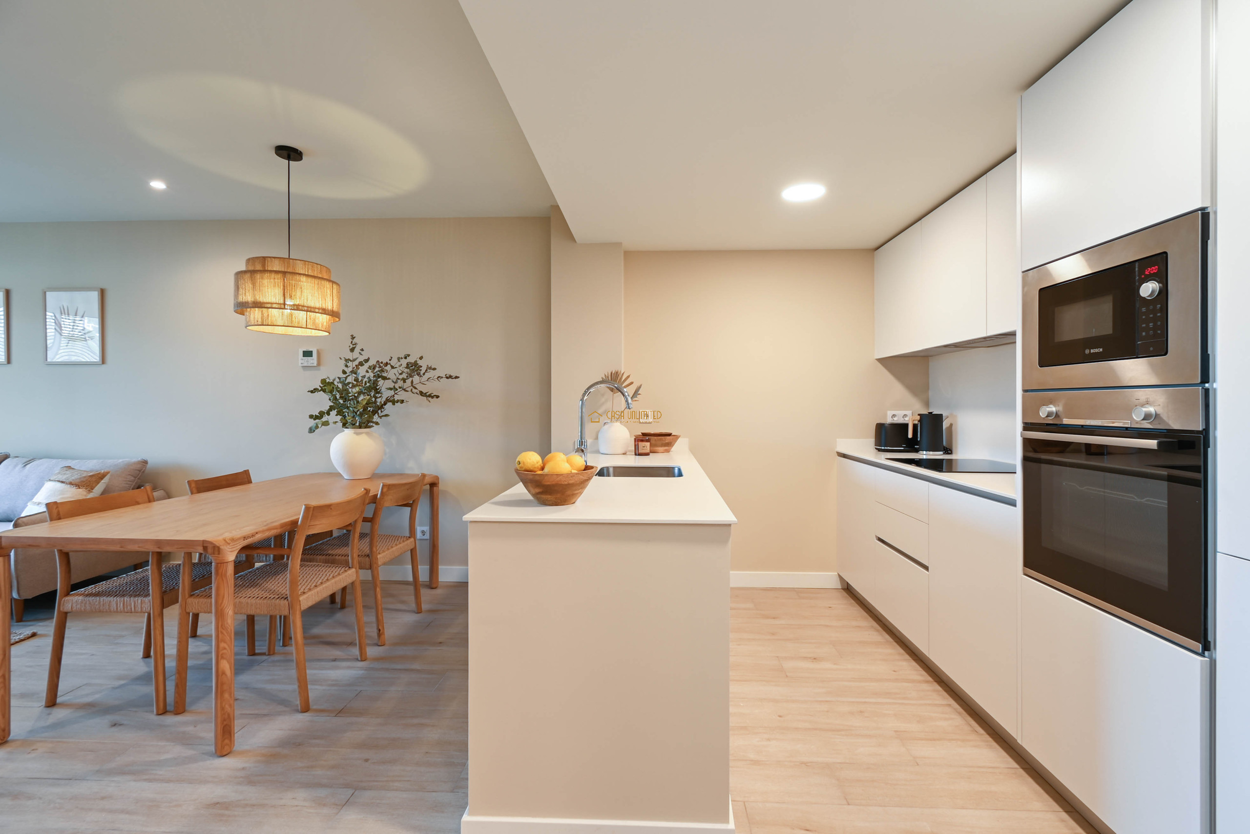 Ontdek dit moderne en sfeervolle appartement waar comfort en locatie centraal staan. De lichte woonkamer met open keuken zorgt voor een ruim en uitnodigend geheel, ideaal om samen te koken en te ontspannen. Vanuit de leefruimte heb je toegang tot het balkon met uitzicht op het historische centrum van Jávea; een charmant decor dat zowel overdag als ’s avonds sfeer uitstraalt.