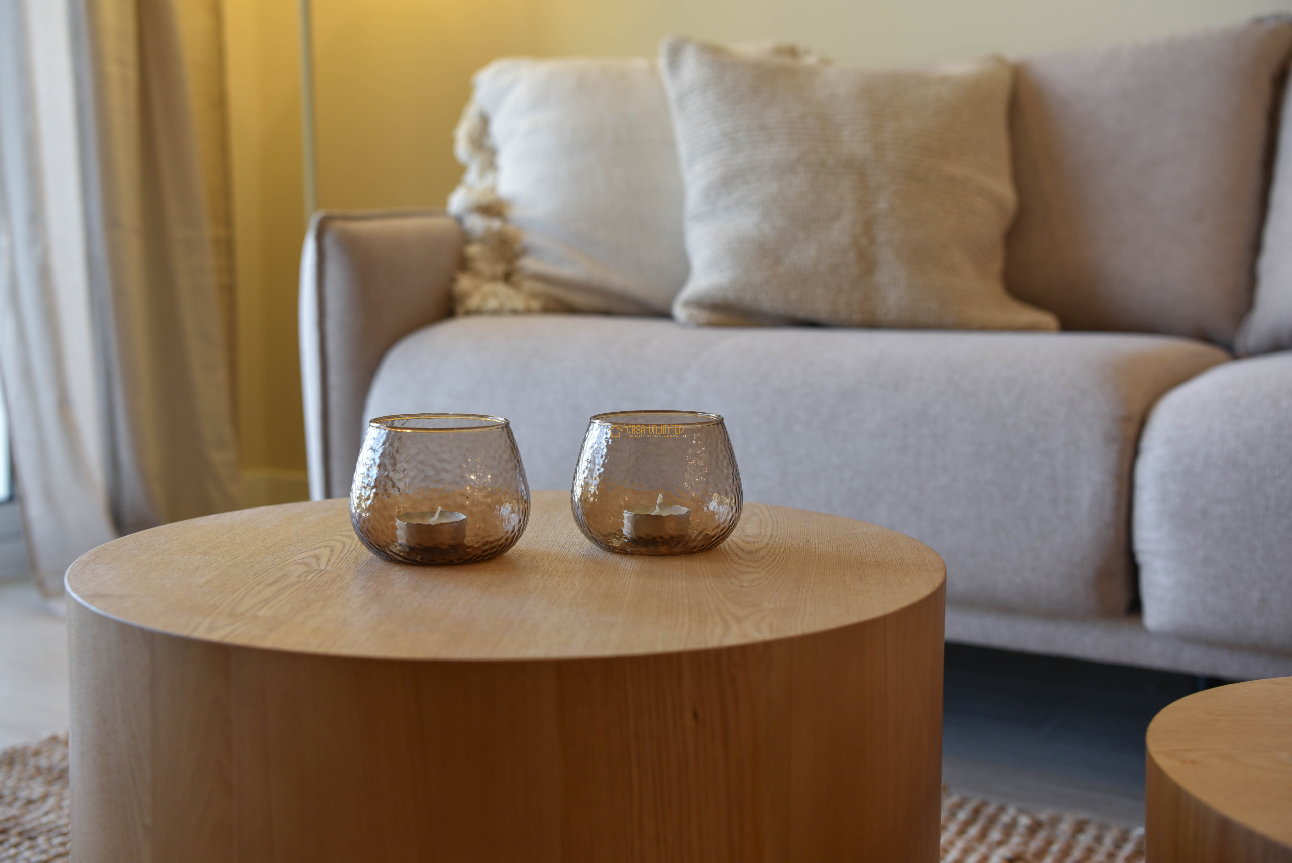 Modern en sfeervol appartement met een lichte woonkamer, stijlvolle open keuken en toegang tot een ruim balkon met zitgedeelte. De zachte kleuren en natuurlijke materialen zorgen voor een serene, luxe uitstraling.