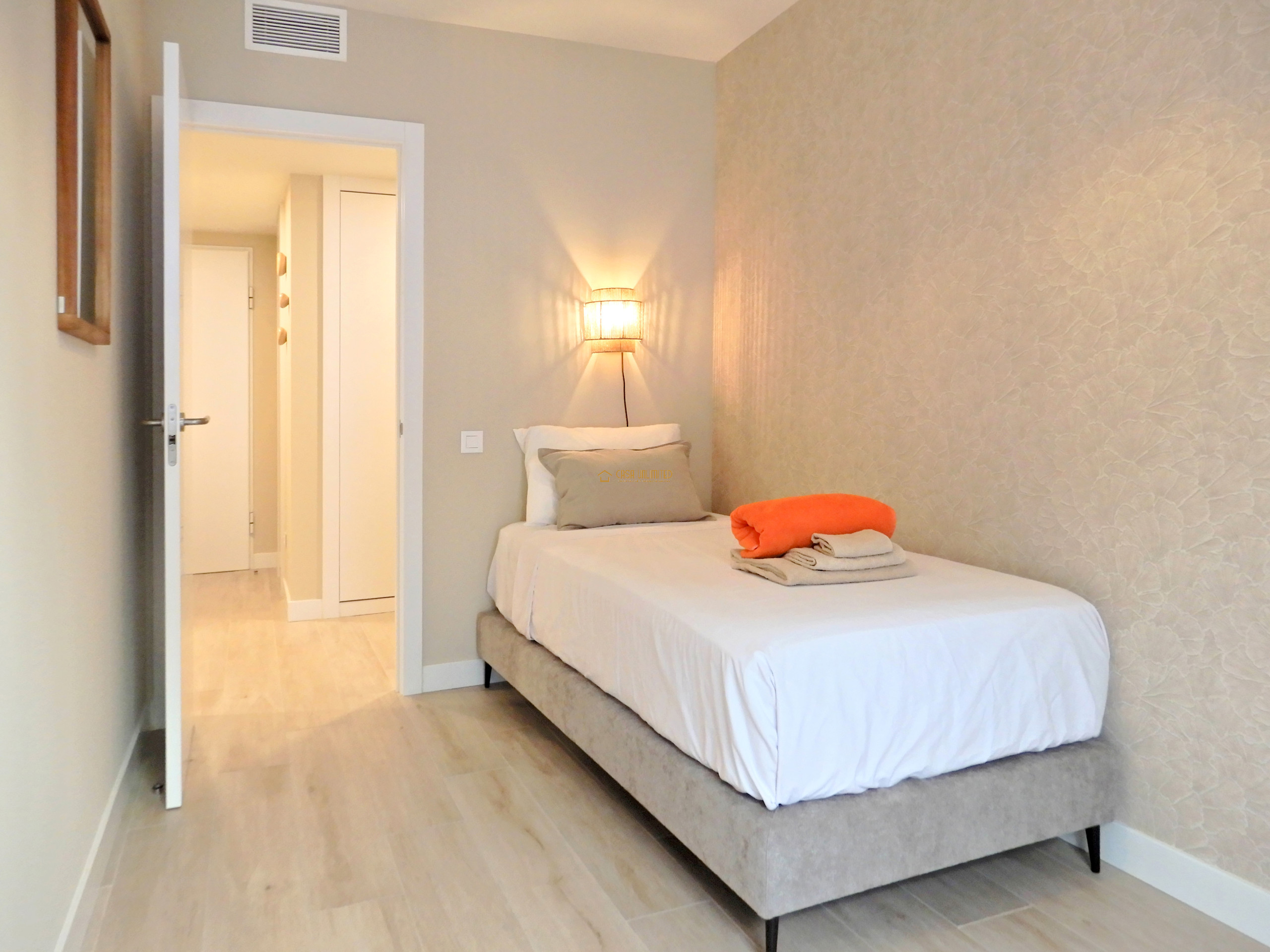 Het appartement beschikt over drie slaapkamers, waaronder een praktische eenpersoonsslaapkamer, en twee moderne badkamers, beide voorzien van een douche. Ideaal voor gezinnen, stellen of gasten die comfort en privacy waarderen.